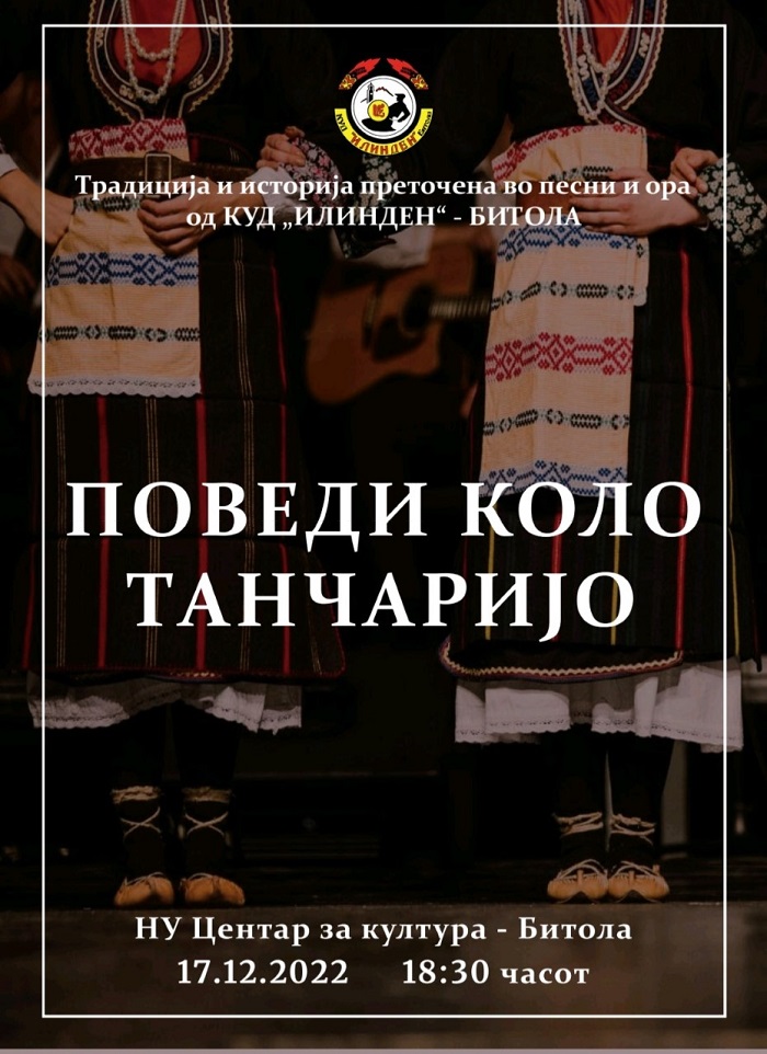 Културно – уметничкото друштво „Илинден“ вечер во Битола ќе го одржи традиционалниот годишен концерт „Поведи коло танчаријо“ насловен според истоимената сценска адаптација од источен дел на Славиште што ја подготви Љупка Стефановска.