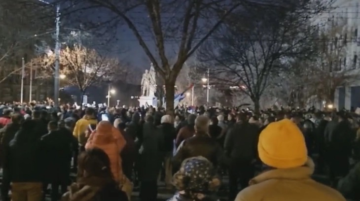 Неколку стотици граѓани се собраа нешто пред 18 часот во центарот на Белград на протест против прифаќањето на германско-францускиот план за Косово. Насобраните носат голем транспарент со натпис „Косово е срцето на Србија“.