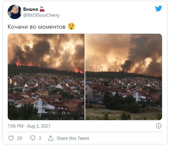 Градоначалникот Николчо Илиев за „360 степени“ изјави огнот го гаснат со петте противпожарни возила што ги имаат, а едно веќе изгорело. Ситуацијата се влошува затоа што не можат да добијат помош од околните градови затоа што и таму избувнуваат пожари.