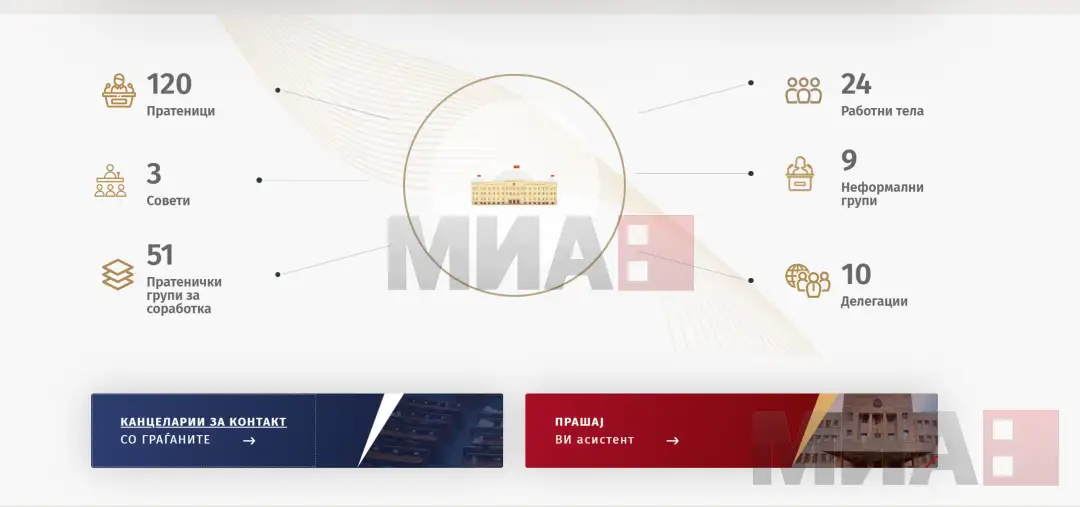 На веб – страницата на Собранието е поставена алатка за вештачката интелегенција преку која се овозможува граѓаните во кое било време преку внесување на достапни линкови од содржини на јутјуб каналот на законодавниот дом да разговараат со ВИ асистент и да ги добијат соодветните потребни информации за пленарни седници, комисии или други содржини.