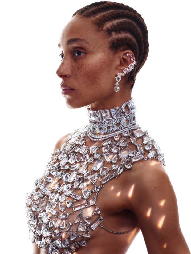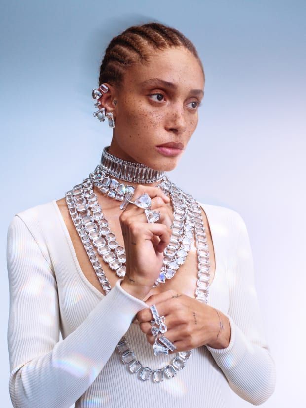 Колекцијата # 1 – именувана по членот 1, првиот кристал Даниел Сваровски некогаш скициран – вклучува сите видови накит, од ѓердани и обетки и прстени до ланци и елеци за тело, со акцент на бојата и геометријата. “Почнав од основите на основите. Отидов подалеку во архивата, до материјалот”, вели Енгелберт. „Не се случува секојдневно кога ќе сретнете компанија што е сопственик на материјалот.