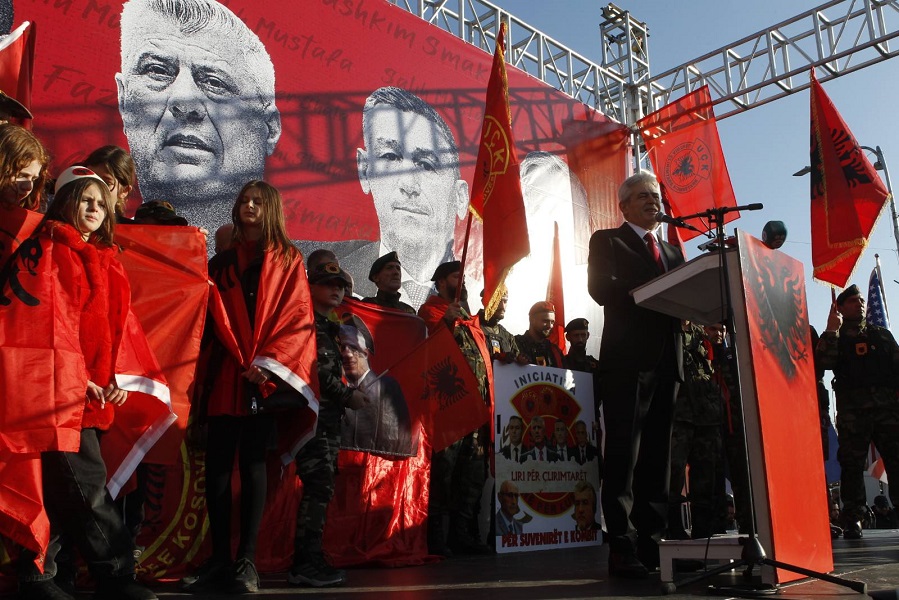 Во тек е протестот за поддршка на поранешните водачи на Ослободителната војска на Косово, кои сè уште се наоѓаат во притвор во Хаг под обвинение за воени злосторства.