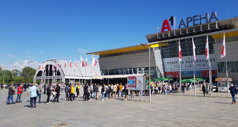 Долга редица граѓани стрпливо чекаа утринава пред спортската сала „Борис Трајковски“ да ја примат втората доза на вакцината Спутник В.
