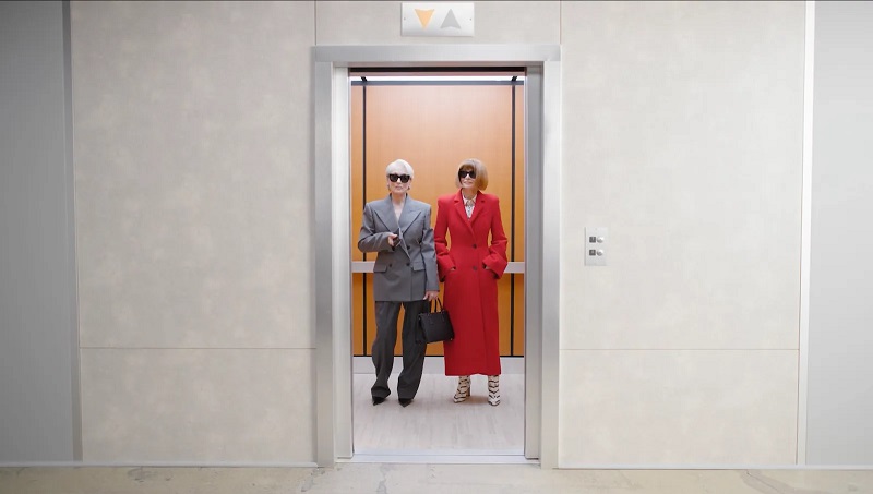 Разговорот, модериран од режисерката на Barbie и Little Women, Грета Гервиг (која исто така ја режира Стрип во нејзината адаптација на „Нарнија“ од Нетфликс), беше објавен во вторник, заедно со фотографии од Стрип и Винтур како позираат заедно во приватен автомобил и корпоративен лифт во канцеларија во стилот на „Пистата“. Фотосесијата ја потпиша славната Ени Лебовиц.