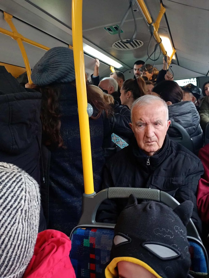 Во автобусот се возеа и повозрасни луѓше, но и работници кои брзаа да стигнат на работното место. Имаше и мајка со две деца седнати на едно седиште, додека таа стоеше покрај нив.