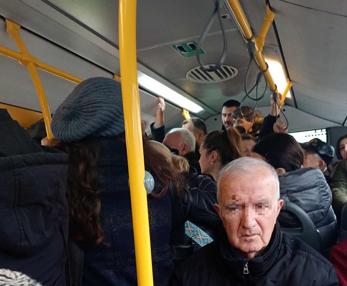 „Што правите во вторник наутро во 8 часот? Седете дома! Излезете подоцна! На работа треба да стигнеме“, со повишен глас им се обрати една патничка во приватен автобус на линијата „23“, откако внатре немаше како да се стои, а не се затвораа ни вратите на автобусот.