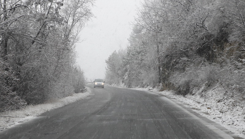 Сообраќајот на државните патишта се одвива по влажни коловози со остатоци од кашест снег по интервенција на дежурните екипи на ЈП „Македонија пат“.