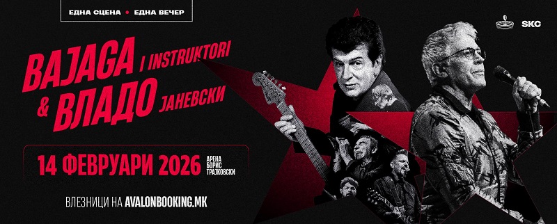 Заедно на ЕДНА СЦЕНА, и само ЕДНА ВЕЧЕР, двајцата реално најголеми хитмејкери БАЈАГА и ВЛАДО ЈАНЕВСКИ со голем заеднички концерт на 14 ФЕВРУАРИ ВО АРЕНА БОРИС ТРАЈКОВСКИ!