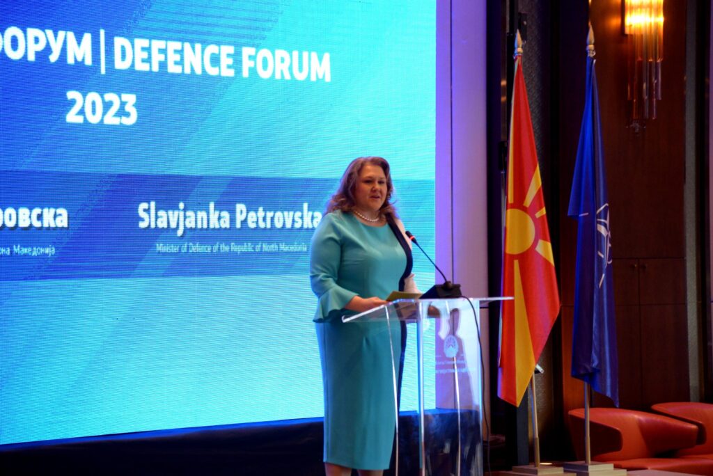 Симбиозата помеѓу одбраната и Армијата, од една и академската заедница и невладиниот сектор од друга страна, геополитичката реалност и важноста на членството во НАТО и развојот на одбраната и Армијата беа темите на кои говореше министерката за одбрана Славјанка Петровска на денешниот прв Одбранбен форум, организиран од Министерството за одбрана. На форумот свое воведно обраќање имаше и амбасадорката на САД, Анџела Агелер, а преку видео-конференциска врска се обрати и генералниот секретар на НАТО, Јенс Столтенберг.
