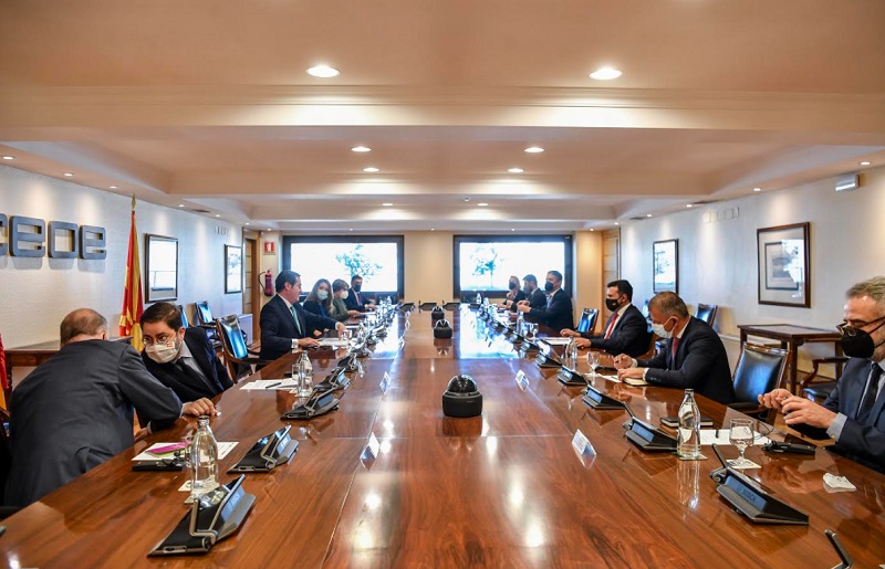 На средбата со претседателот на конфедерацијата Антонио Гараменди, на која присуствуваше и заменик-претседателот во Владата задолжен за европски прашања Никола Димитров, премиерот Заев истакна дека неговата посета на Шпанија, меѓу другото, има за цел да покаже дека Северна Македонија ги отвора широко вратите за шпанските инвеститори.