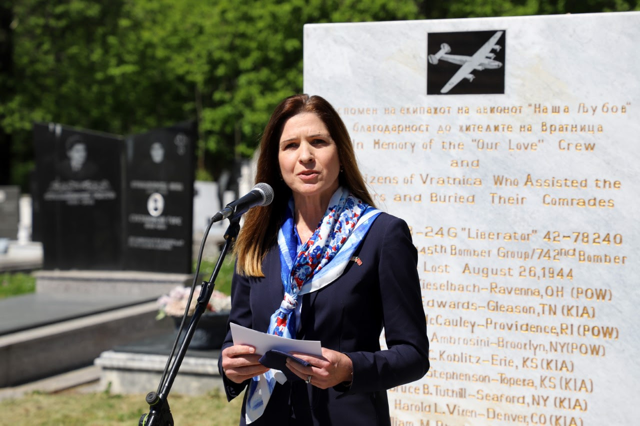 По повод 9-ти Мај, Денот на победата над фашизмот во Втората светска војна, претседателот на Владата на Република Северна Македонија Зоран Заев, заедно со амбасадорката на САД во земјава Кејт Мери Брнз и претставници на Сојузот на борци се поклони пред споменикот подигнат во чест на петмина американски пилоти, во село Вратница, Тетовско.