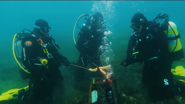 Нуркачите од Нуркачкиот центар „Амфора“ од Охрид денеска во водите на Охридското Езеро кај Музејот на вода го запалија василичарскиот оган, со што го најавија доаѓањето на Стара нова година.