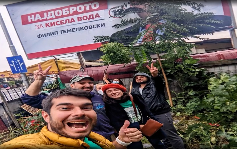„Вчера, во јавност се појави видео како во Кисела Вода се сечат здрави и големи дрва, со цел поубаво да се гледал билборд на една од политичките партии. Сечењето на белите дробови на Скопје не смее да се случи и природата не смее да трпи поради партиите! Затоа, ЗЕЛЕН ХУМАН ГРАД излезе на терен на истото место каде што беше исечено дрвото, засади ново дрво, а старото исечено го потпревме назад врз билбордот. Сепак, поубаво е кога е зелено!“, порачаа од Зелен Хуман град.