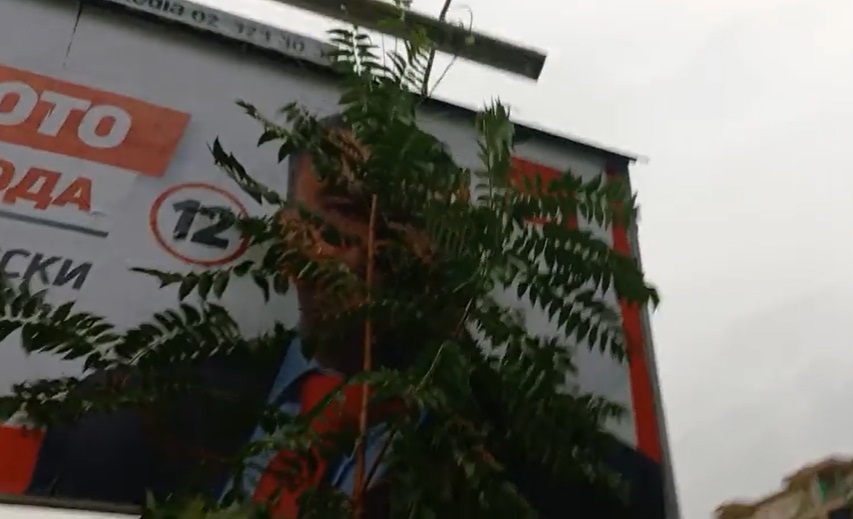 Зелен хуман град засади дрво на местото на исеченото што го криеше билбордот на Темелковски