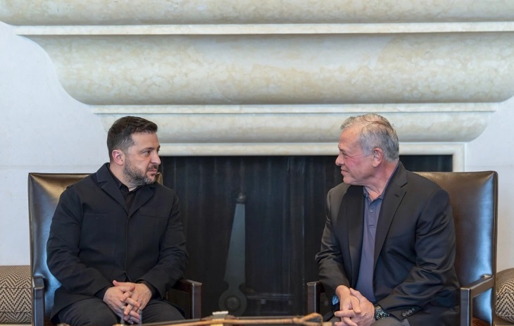 Аман – Украинскиот претседател Володимир Зеленски на вечрашната средба со јорданскиот крал Абдула Втори разговарал за актуелната ситуацијата на Блискиот Исток и во регионот на Персискиот Залив, како и за можностите за безбедносна соработка.
