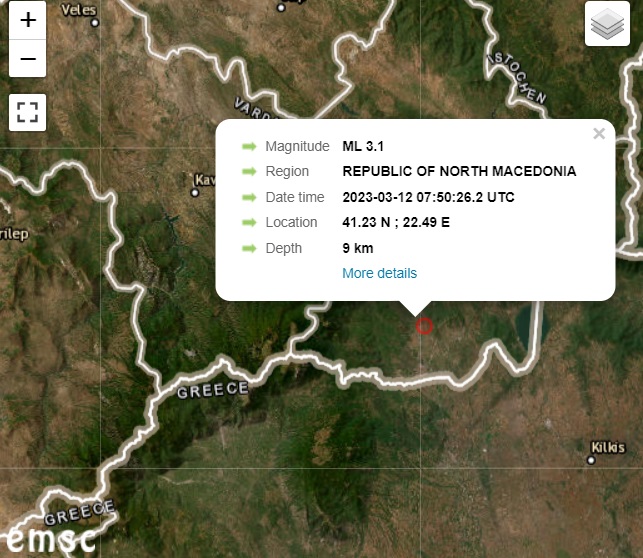 Земјотрес од 3,1 степени по Рихтер, почувствуван во Гевгелија, Валандово, Богданци, Неготино и Кавадарци