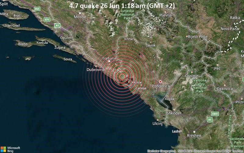 Епицентарот на земјотресот бил на седум километри северно од Херцег Нови на длабочина од 10 километри. Засега нема информации за материјални штети.