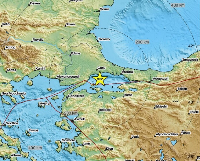 Земјотрес со јачина од 5,0 степени по Рихтер денес ја погоди западна Турција, со епицентар во Мраморното Море, на 39 километри оддалеченост од покраината Текирдаг, известува Европско-медитеранскиот сеизмолошки центар (EMSC).