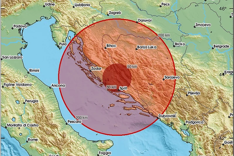 Епицентарот на земјотресот бил на пет километри од Трогир со 10.900 жители и 17 километри од Сплит со 176.000 жители.
