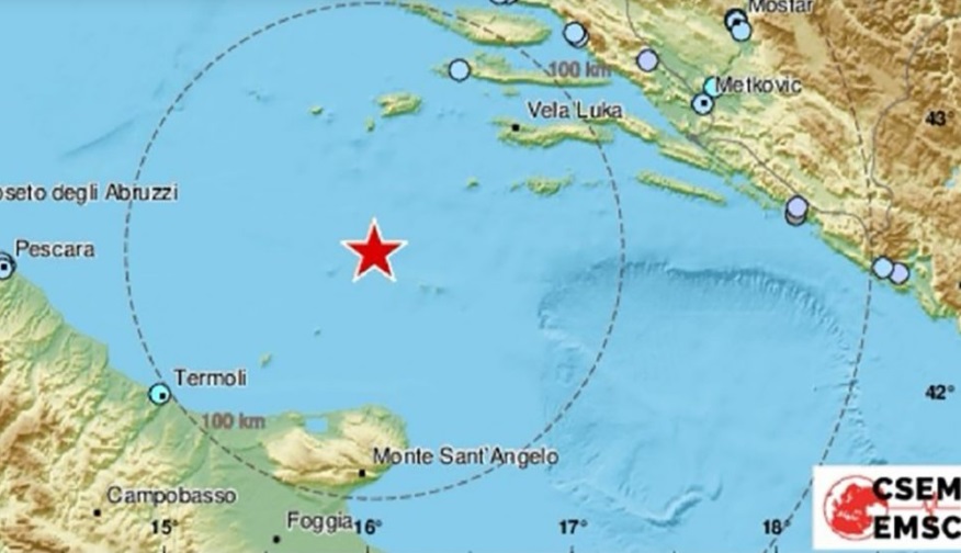 Земјотресот, кој се чувствуваше во Апулија и Абруцо сè до Неапол, е регистриран во 14,47 часот на длабочина од 5 км под морето, на околу 90 км од островот Тремити и 30 км од Ластово.