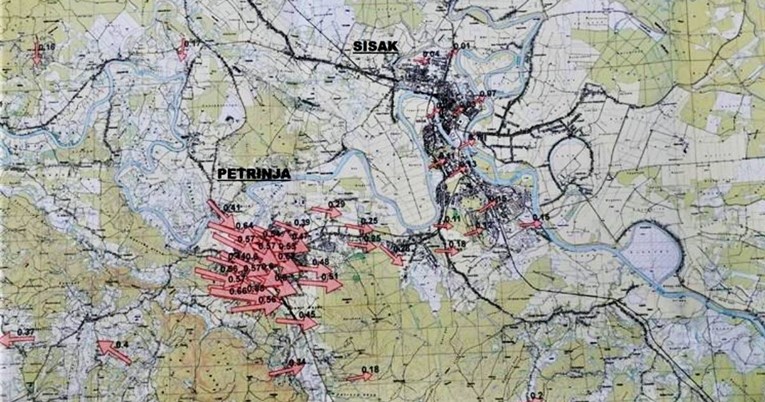 „Врз основа на добиените резултати и анализата на координатите на постојаните точки од геодетската основа пред и по земјотресот, утврдено е дека најголемо поместување покажуваат точките на подрачјето на Петриња и тоа со средни вредности на поместување од 45 сантиметри во насока на југоисток, додека средните вредности на движење на Глина изнесуваат 10 сантиметри кон северозапад, односно 10 сантиметри кон североисток за подрачјето на Сисак.. Исто така, утврдено е поместување од 10 сантиметри (спуштање на тлото) за подрачјето на Глина“, објави Цивилната заштита.