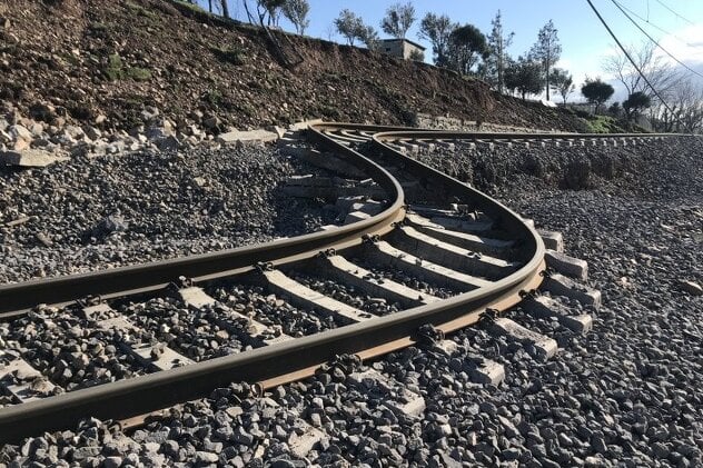 За јачината на земјотресот во Турција, сведочат и искривените пруги во центарот на Караманмарас, еден од градовите кои најмногу страдаа од потресот.