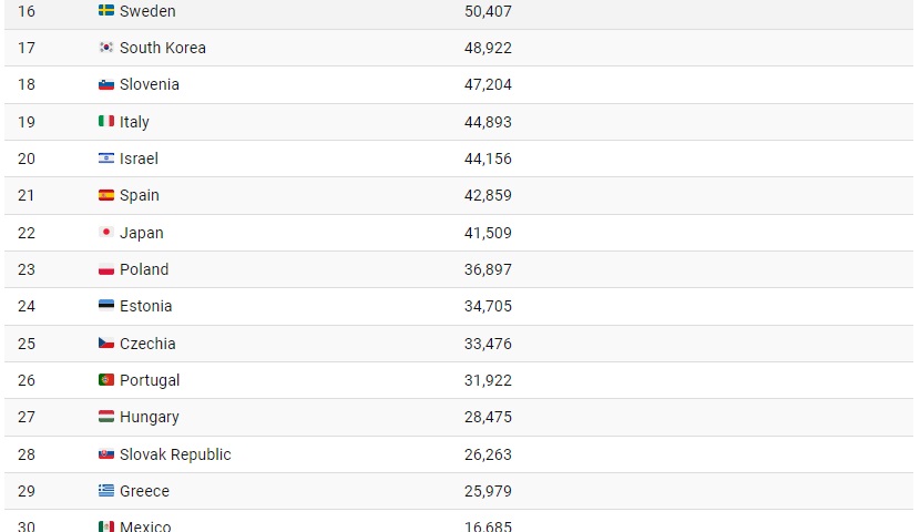 Овие податоци се добиени од ОЕЦД (Организација за економска соработка и развој), меѓународна организација која промовира политики за подобрување на економската и социјалната благосостојба. Има 38 земји-членки, но во овој случај податоците за сите не беа достапни.