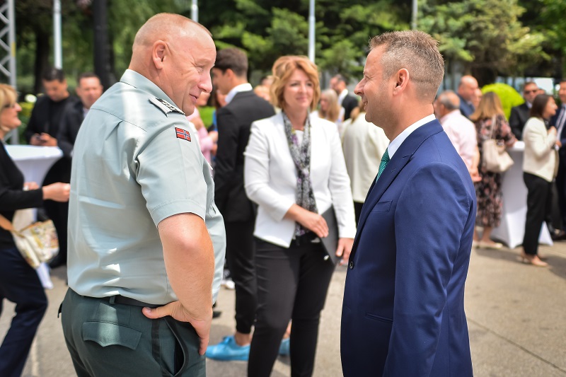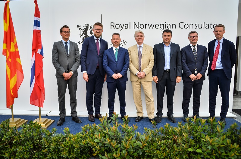 На официјално отворање на конзулатот во присуство на министри во Владата, претставници на бизнис заедницата, на дипломатскиот кор, пријатели и деловни соработници, се обрати државниот секретар во норвешкото МНР, Ајвинд Вад Петерсон кој го потенцира одбележувањето годинава на 30 години од воспоставувањето на билатералните односи меѓу двете земји, кои рече станаа соседи по азбучен ред во именувањето во меѓународните организации откако државава го промени името.