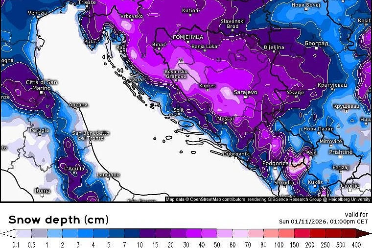 Како што предупредуваат метеоролошки извори кои ги следат регионалните временски трендови, снегот може да предизвика големи тешкотии во Хрватска и Босна и Херцеговина, додека снежни врнежи се очекуваат и во Истра и северен Јадран. Пред снежната линија да се спушти кон низините, поголемиот дел од Црна Гора, Херцеговина и Далмација ќе бидат погодени од обилни дождови, а можни се и локални поплави и лизгање на земјиштето.