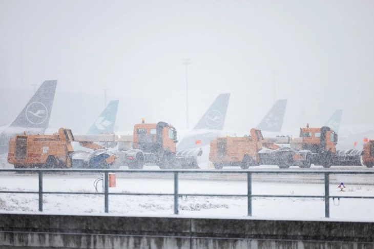 Поради снежната бура стотици летови откажани на аеродромот во Франкфурт