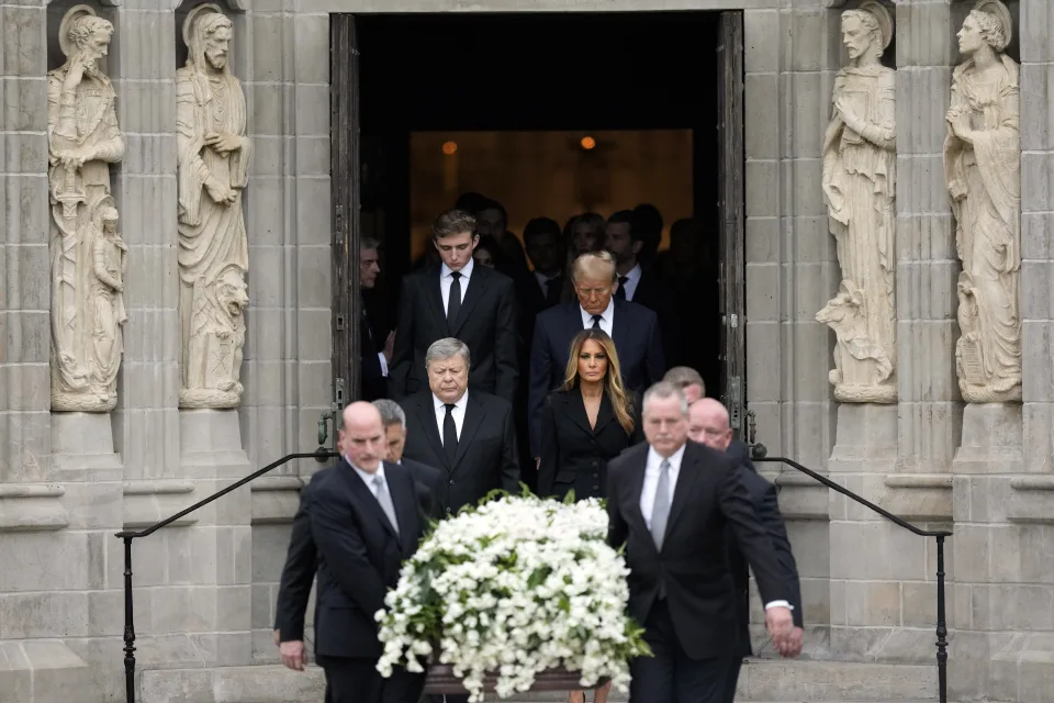 По богослужбата, свештеник мавташе со урна со темјан и еден човек држеше крст додека ковчегот беше изнесен од црквата, по што следеа Меланија Трамп и нејзиниот татко, а потоа Доналд Трамп и нивниот син Барон.