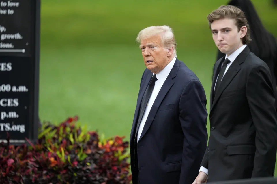На полноќ, пред црквата застана погребна кола, а потоа џип во кој се превезуваа поранешниот претседател и првата дама и уште две возила со детали од нивната тајна служба. Носејќи црн фустан и очила за сонце, Меланија Трамп и нејзиниот татко Виктор Кнавс ја водеа поворката до црквата, а потоа и поранешниот претседател и нивниот син Барон.